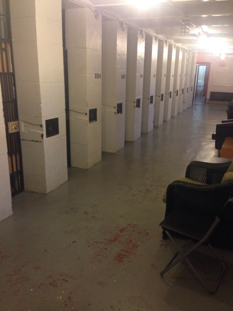 I check in and unpack. I can’t help myself, I just simply have to take a look round at the cells and death row area for photo opportunities! Take a look below, they even had beds inside the cells in some of them and used red paint to stain the concrete floors so that it actually looks like blood, so cool!