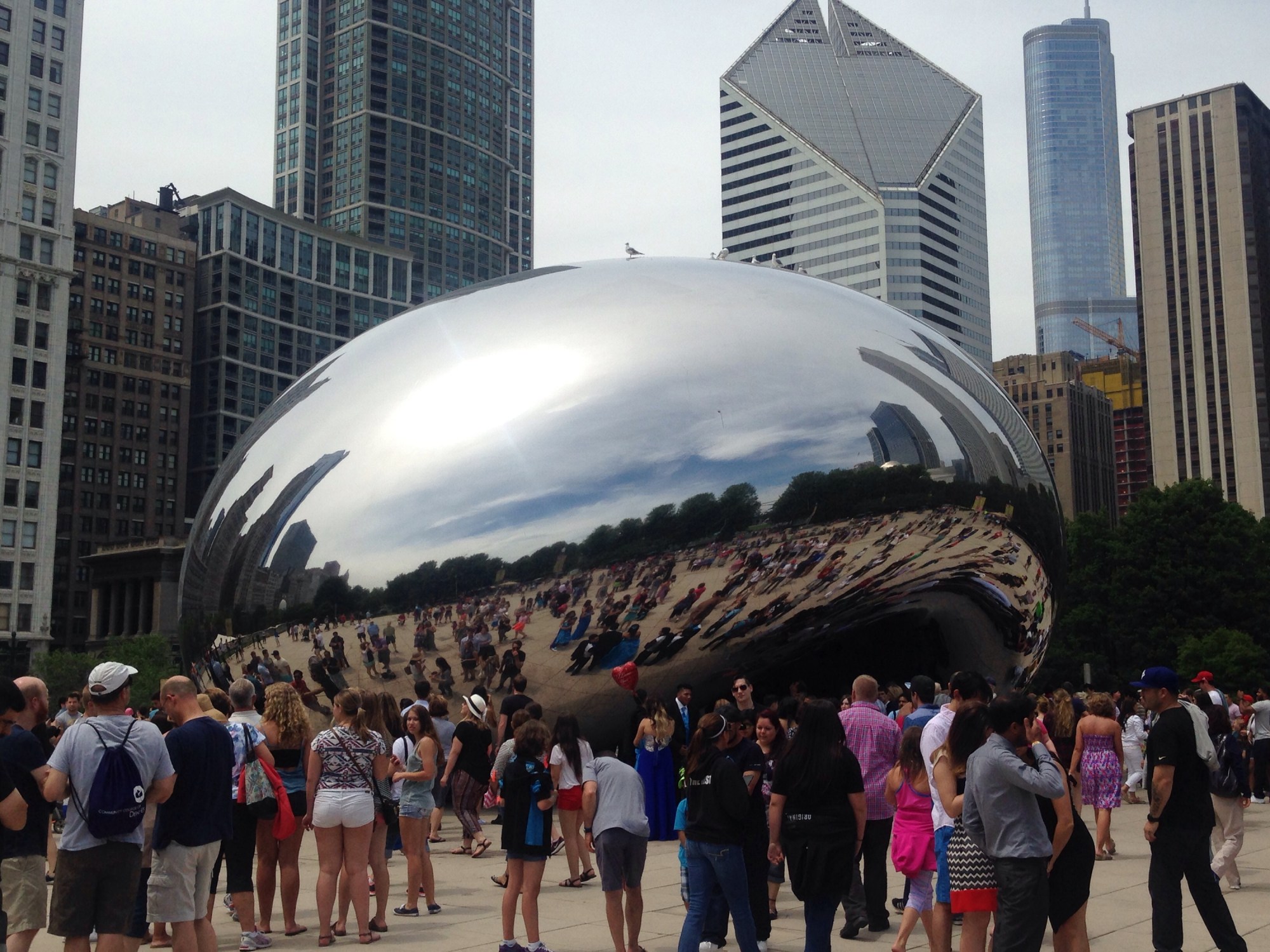 After the tour we decided to go check out two huge walls in middle of Millenium park which a famous artist designed over a thousand different face images that change throughout the whole day and after about five mins water spits out from the mouth of the image, something you have to kinda see to get an idea of what it looks like at the time. We also saw the big massive art attraction known as ‘Cloud Gate’ which is also known as the ‘Big Bean’ (see pics above) and to be honest attracted a lot of attention for tourists and even married couples also. It was worth a look and was particularly good for selfies!
