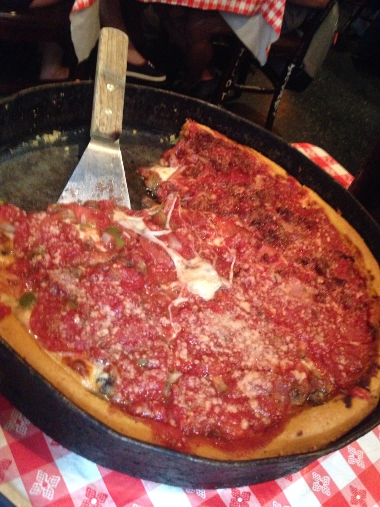 Yes a picture can speak for itself! Me and Reinder could only manage a few slices each so we thought best make it worth our while and take the rest home with us for sloppy seconds the next day! Too good to throw away and we waddled away with a lot of pizza dough that’s filled us up for prob rest of the day! I can confirm that was probably the best pizza I’ve ever had and if your going Chicago make sure you visit ‘Ginos’ or ‘Giordanos’ pizza restaurants and a tip to save money is do half and half large size between you, not each!