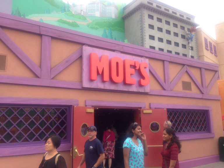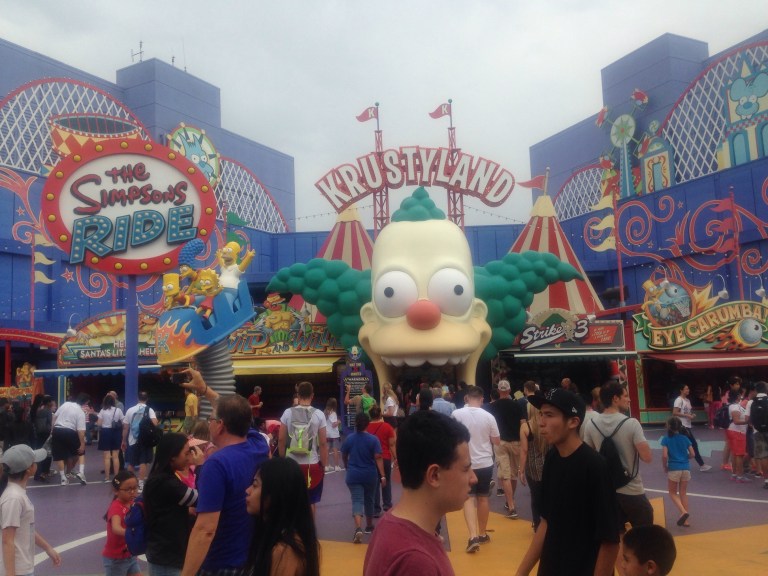 There are all sorts of dress up acts here, it’s same all over Hollywood strip! Our first ride is the Krusty the clown rollercoaster from the Simpsons, there’s all sorts to look at here even a Harry Potter castle set up which opens up later this year. There’s a handy time limit schedule for how long you have to wait in cues for each ride. I’m not the greatest with theme park rides but I paid big dollar to get in so naturally I’m going to try to go on everything, very apprehensive for my first ride though, feel like I’m fourteen all over again. Here goes!