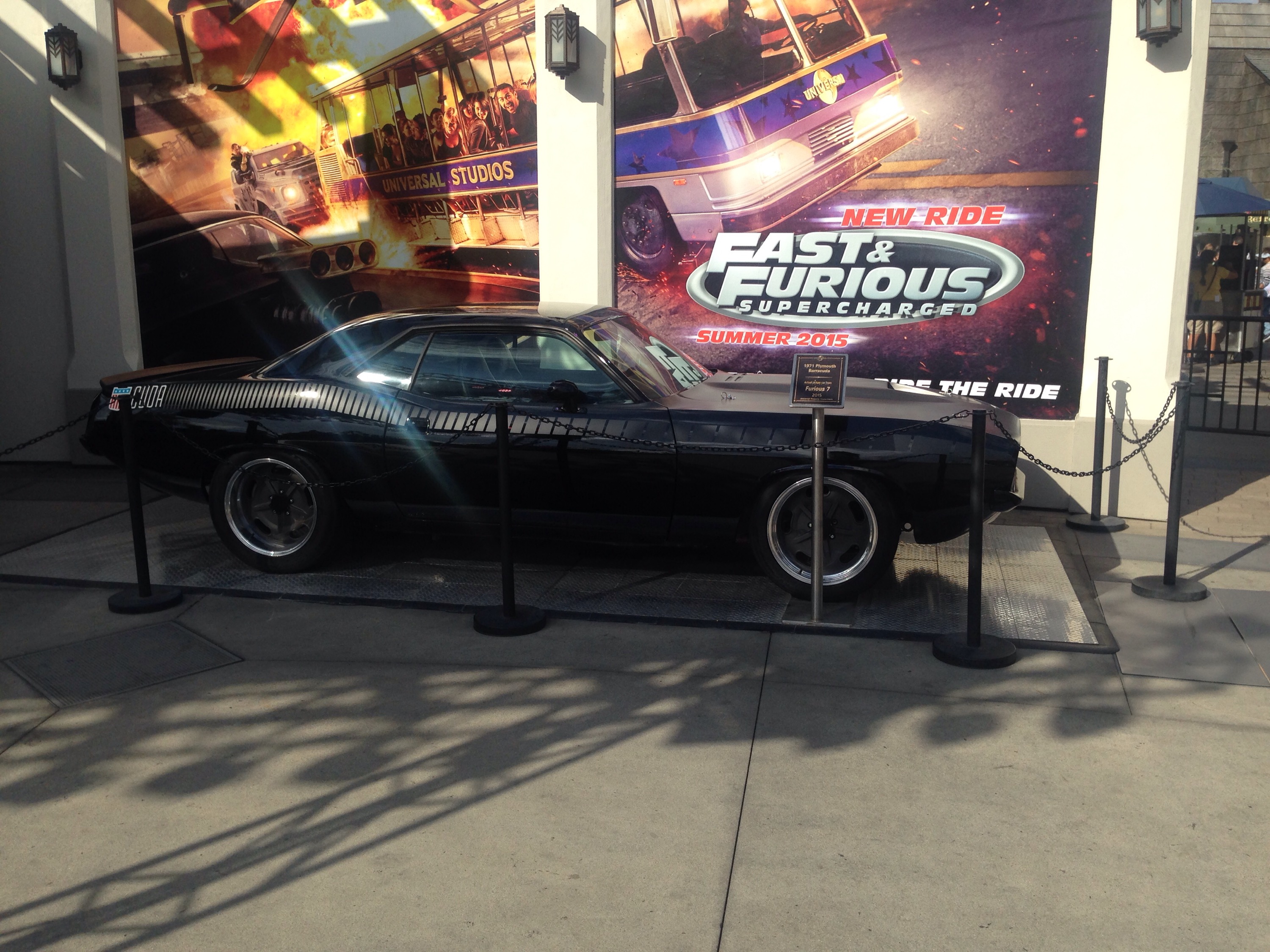 Please excuse my hair here, I fancied a change that day! Surprised the raptor didn’t bite it off! On our way out we pass the Fast And Furious exhibition, very nice cars!