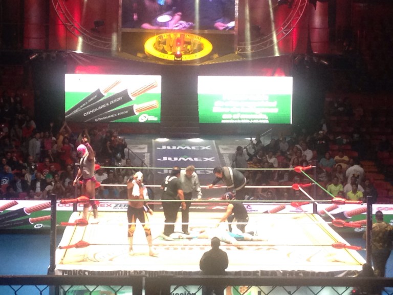The wrestling in itself was pretty predictable and I lost tracks of amount arm drag take downs and hurricanranas! In fairness I was expecting bit more imagination and some midgets would of made it bit more fun but sadly it was very much same old scene for each match. Most matches seemed to be in sequence of three falls and lots of triple tag team matches. They have a written rule out here that if opponent has their mask removed during contest it’s an instant defeat an humiliation for the loser. The mask is a big deal here! It only happened once so not that a big deal anyhow lol. One thing that did stand out was there was a gay wrestler named Marco who the crowd took a real liking to, he had pink hair, was very camp and spent majority of time chasing his opponent around the ring for a smooch! It was good to see the team he was on won as it gave us some enjoyment and laughter seeing his victory dance lol! Here’s a few shots from the night and a video, see if you can recognise the guy in the white mask!