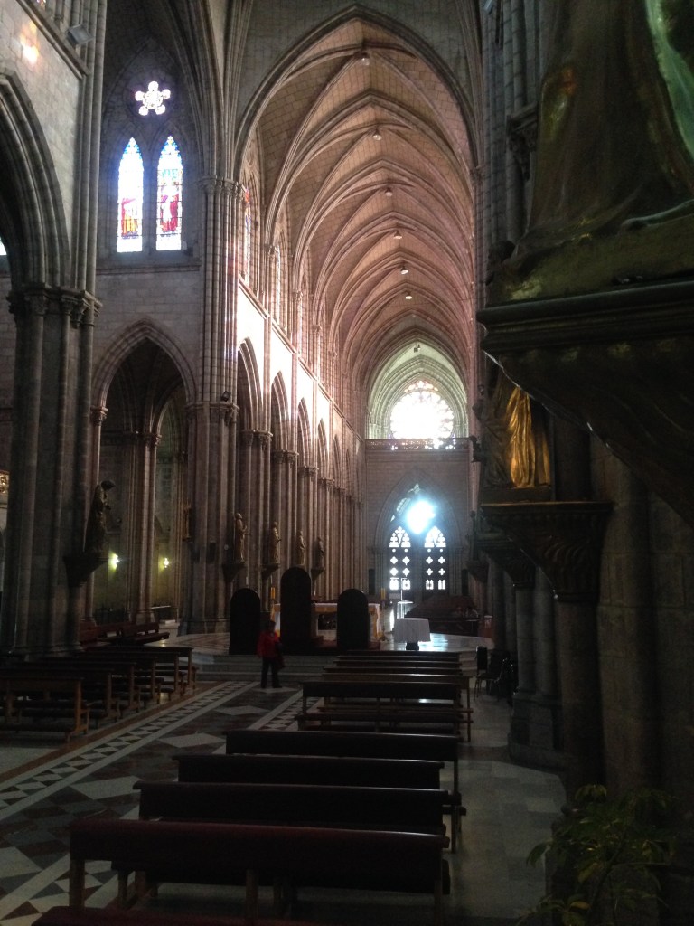 I used this as a good opportunity to get out and amongst it and explore around some of Quito. I have no idea where I am going or where to turn out of the hotel but after 5-10 mins I get out into the city more and head towards a massive cathedral called ‘Basilca del Voto Nacional’ that I kid you not you could see from about twenty minutes away, it was that big! It’s uphill also so obviously a great way of keeping in shape for Inca Trail training but also an eye opener for arriving finally in South America at long last.