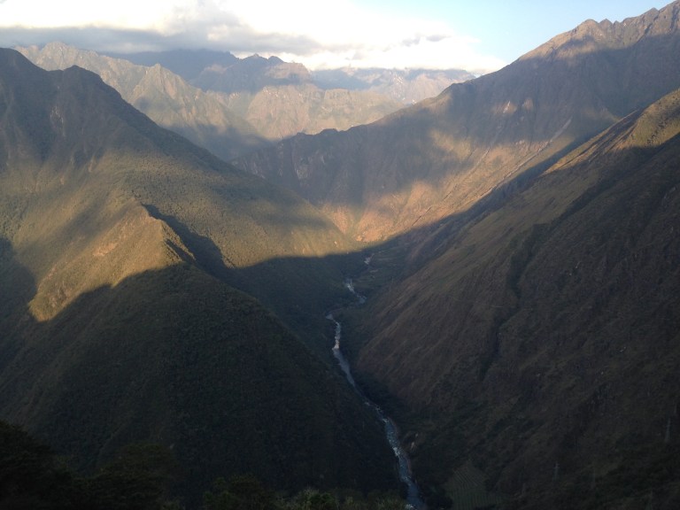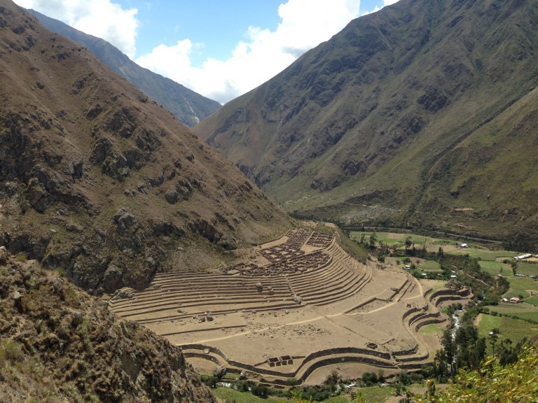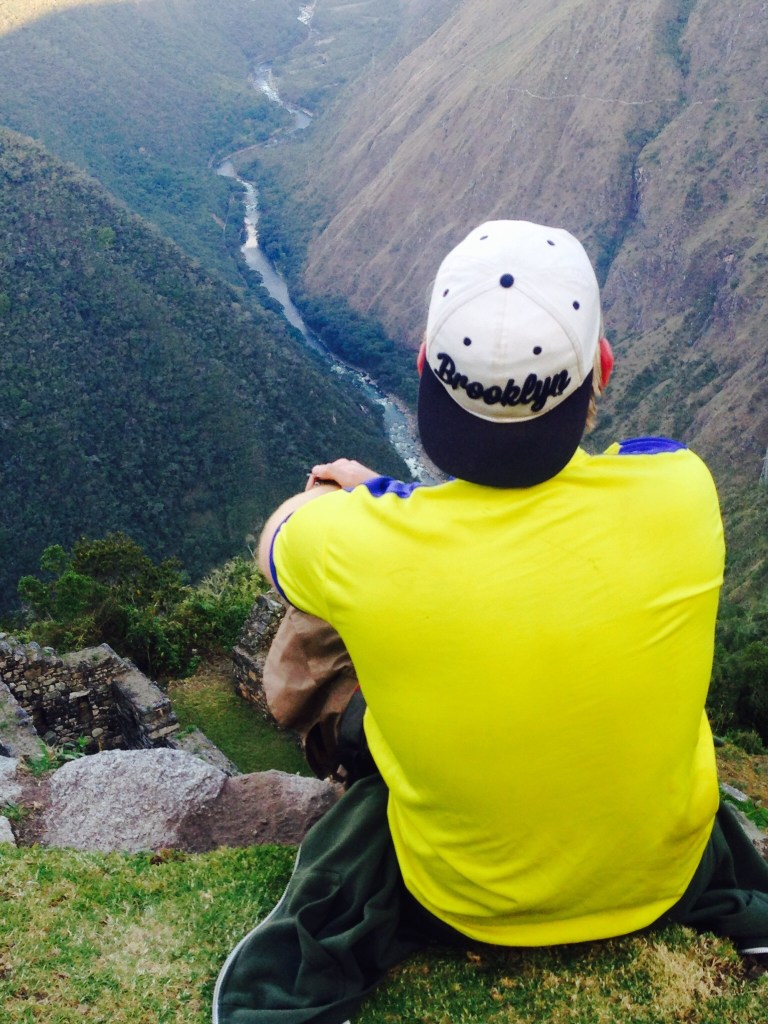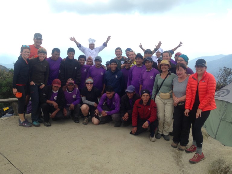 So back to the last afternoon of the trail after our mammoth sugar overload of cake! Just a few more hours now and we are at the last campsite for the last supper. If I’m honest the last part of the hike was probably the easiest so far as it was mainly up and down and but neither continuously. Feet were sore and all of us had been bitten by the dammed small flies that took pleasure in biting us all, particularly Bex! Elias showed us two more archaeological sites along the way and some with even some llamas to have selfies with! Hi John! It was here where we had one of our most memorable photos sat together all on the edge of which looked like the world. Take a look for yourselves! The Urubamba Valley Sagrado de los Incas! 12,136 ft up (3,700m).