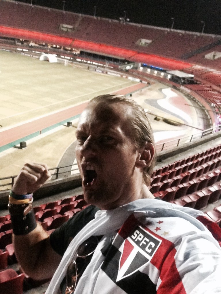 This Rogerio is some player I must say. Obviously a fan favourite with his own song being sung by the excited crowd. Since the moment he came on he has simply changed the game and turned it on its head. Once again he breaks through in on goal and squares it back to earlier goal scorer Alan Kardec and it’s a simple tap in from from five yards. GOL GOL GOL GOL GOOOLLLL! That moment that goal went in I kid you not if their was a roof within that stadium it would of pinged off with the noise that went in and around the ground after that goal hit back of net! 3-2 São Paulo! I’m joining in on all the songs they are singing and bouncing up and down like a fanatical supporter! Is there more to come? You betcha! There are five minutes to go and Rogerio breaks through the defence and is bundled down in the box and the whole stadium cries out what I imagine could only mean… PENALTY!! Clear foul and the ref gives it! I pull out my phone and filmed the whole spot kick so I could share with you all just exactly what went down at that moment. Hit like the thunderbolt of lightning I witnessed in the sky earlier on and straight down the middle by the also rather well known Luis Fabiano! Cue Euphoria!! The game couldn’t of ended in a better way and that is all she wrote! 4-2 final score! What a night and my next objective is to get a taxi outside from somewhere and get myself back to my lovely sofa bed ASAP safely!